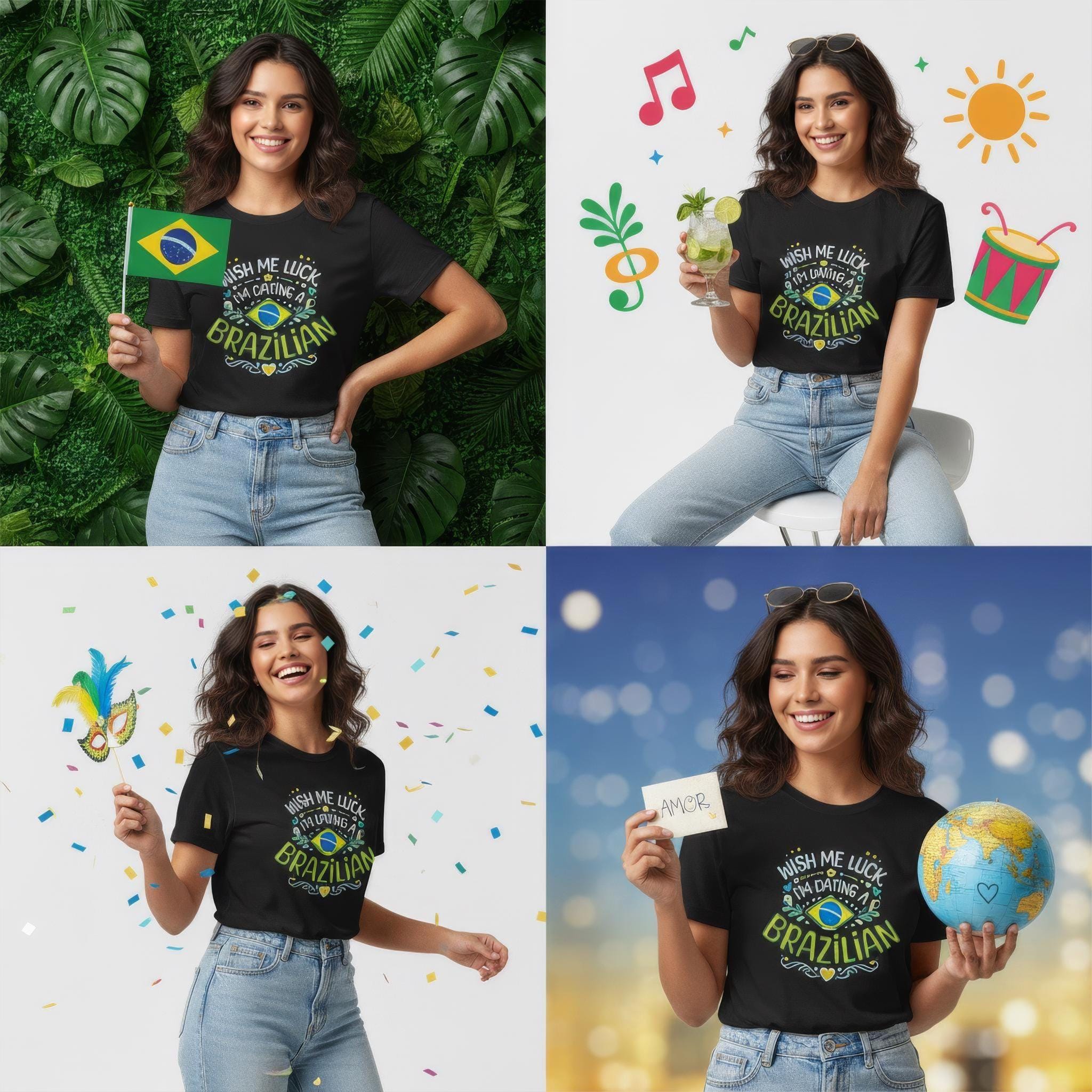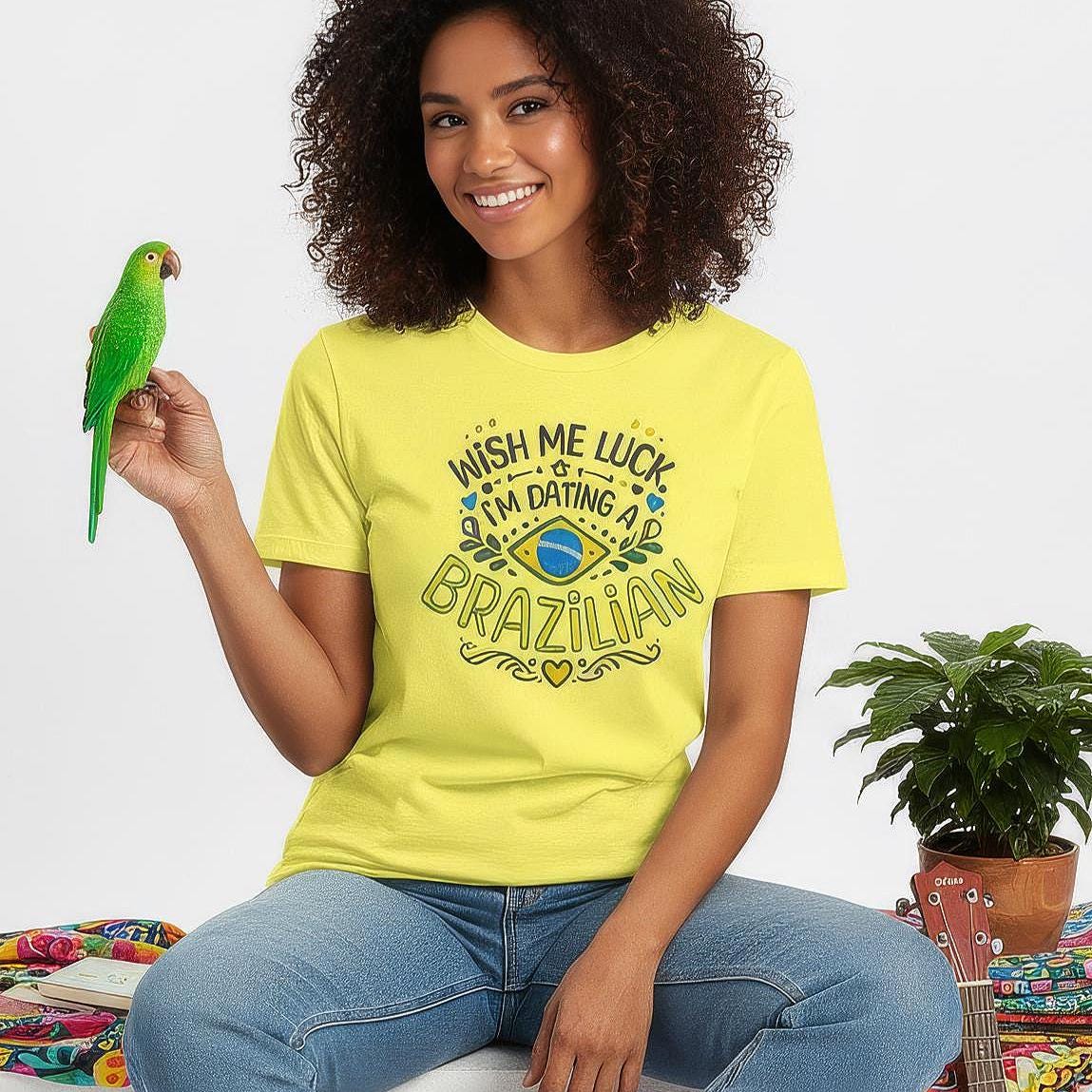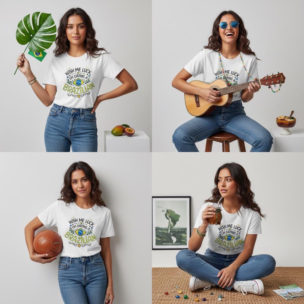 Wear your story. This soft, breathable tee speaks to the small moments that mean everything — movie-night laughter, post-dance hugs, and slow Sunday breakfasts shared with your Brazilian partner. The lightweight Airlume cotton feels gentle against skin while the ribbed crew neck and retail fit keep the silhouette neat and easy to style. Subtle sleeve and neck prints preserve the design’s crispness, and durable side seams and shoulder tape mean this shirt stays true after many wears and washes. Bring a slice of playful affection to anniversaries, Valentine’s Day plans, or casual date nights — a comfortable way to show connection without saying a word.