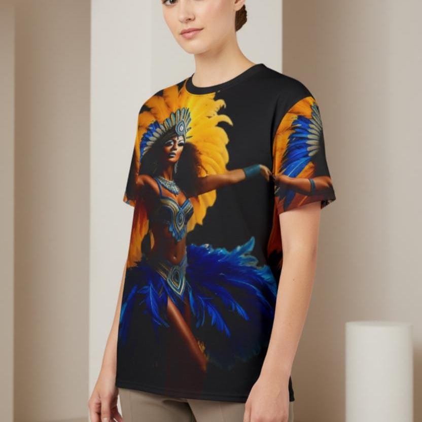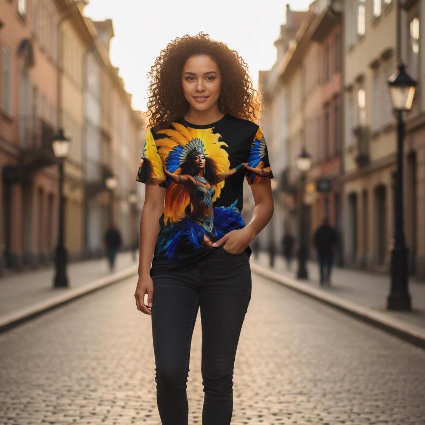 Embrace the vibrant energy of Brazil's Carnival with this festival-ready tee featuring a powerful image of a samba dancer. Perfect for men and women who love bold fashion and music, this tee is a must-have for Carnival celebrations, parades, or standout streetwear looks. Ideal for those who want to stand out and embrace Brazilian culture.