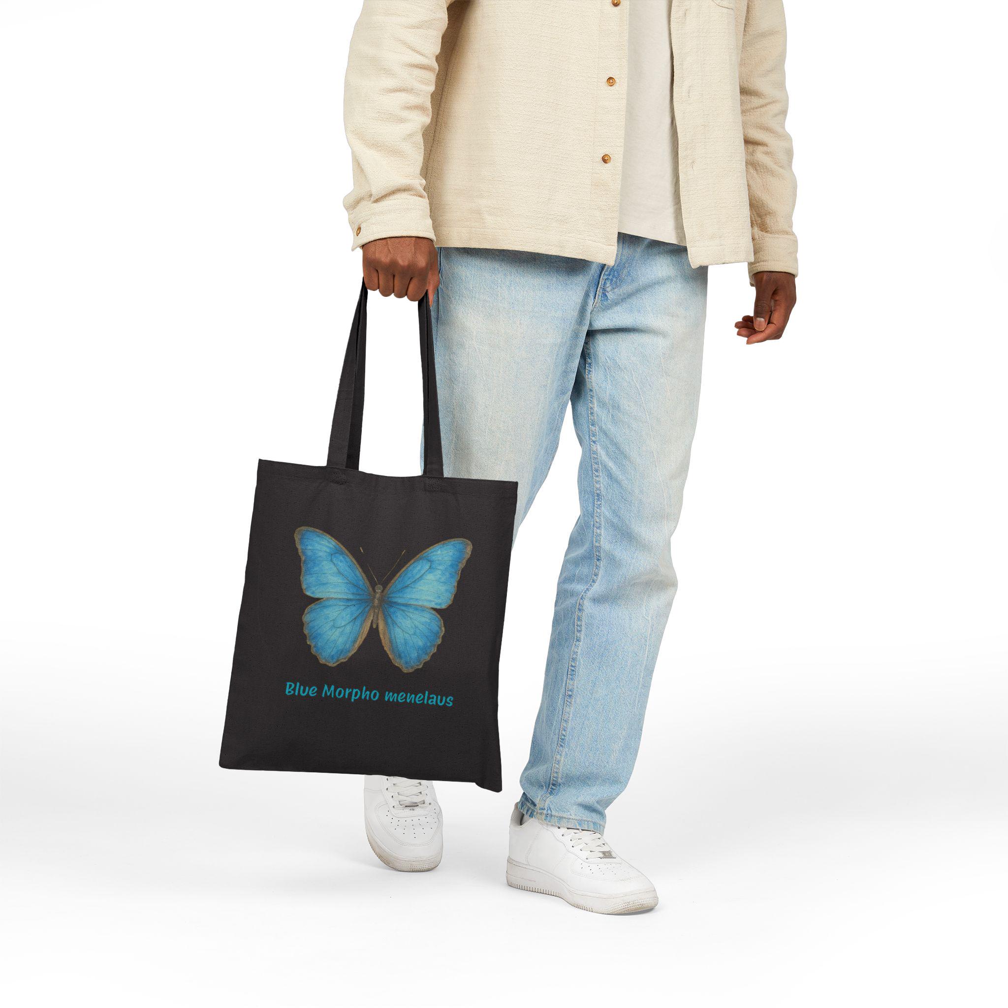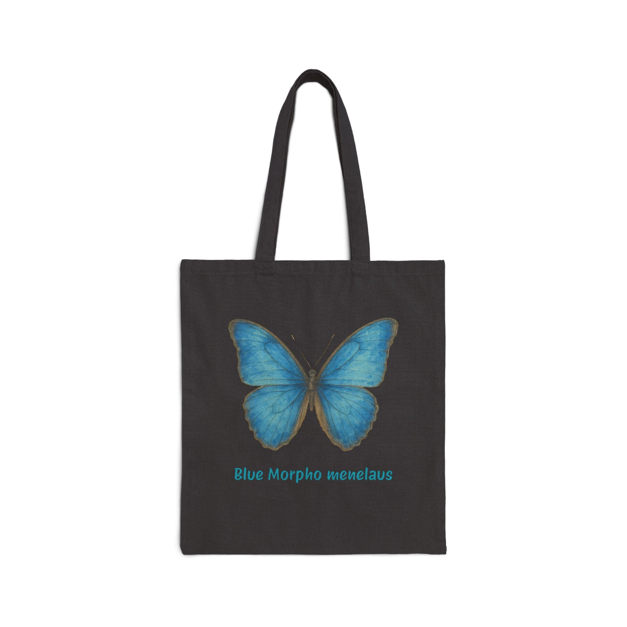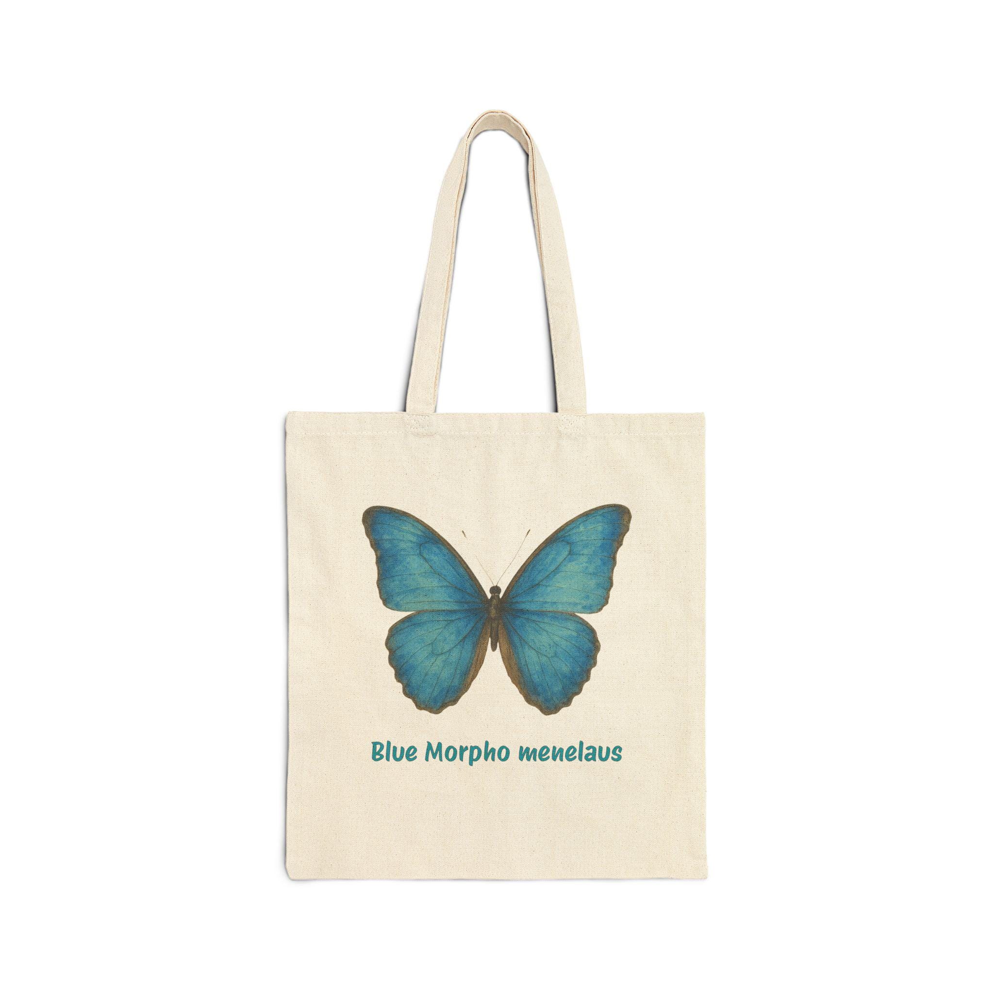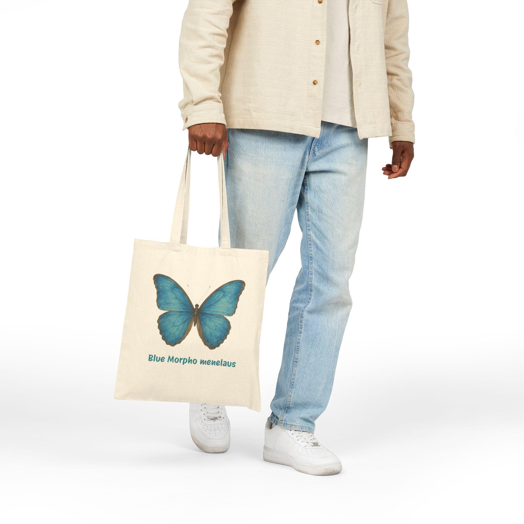 Lightweight yet sturdy, this cotton canvas tote brings a calm, natural touch to everyday carry. A soft, lifelike Blue Morpho print rests on natural canvas — a quiet reminder of garden mornings and slow walks through sunlit trails. The flat, roomy silhouette slips easily over your shoulder, while reinforced self-fabric handles stand up to groceries, books, and market finds. It’s the kind of bag you reach for when you want something simple, durable, and a little poetic to accompany daily errands or weekend outings.