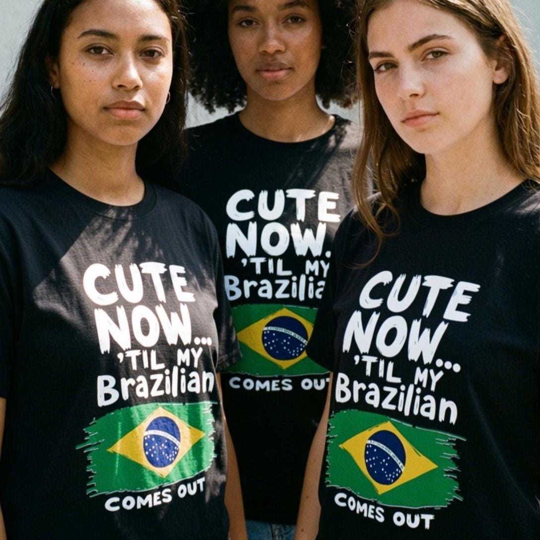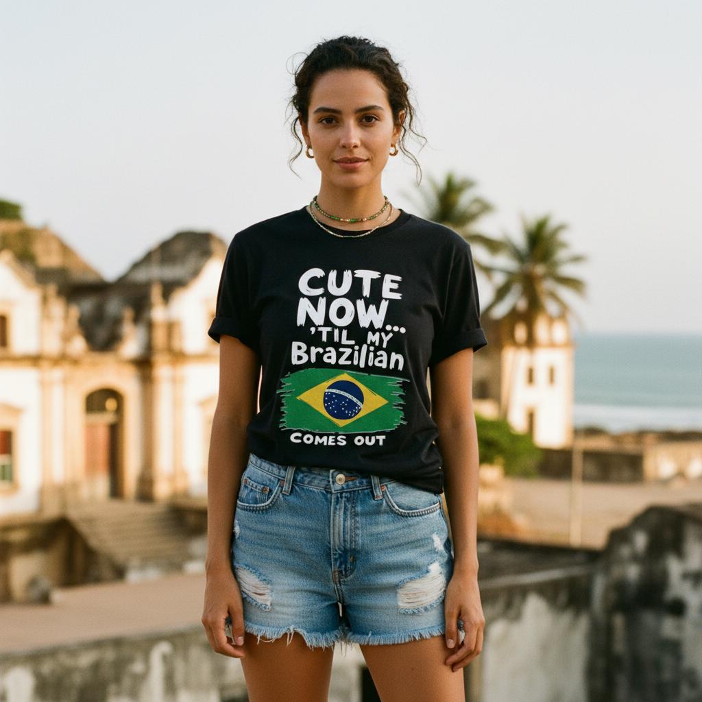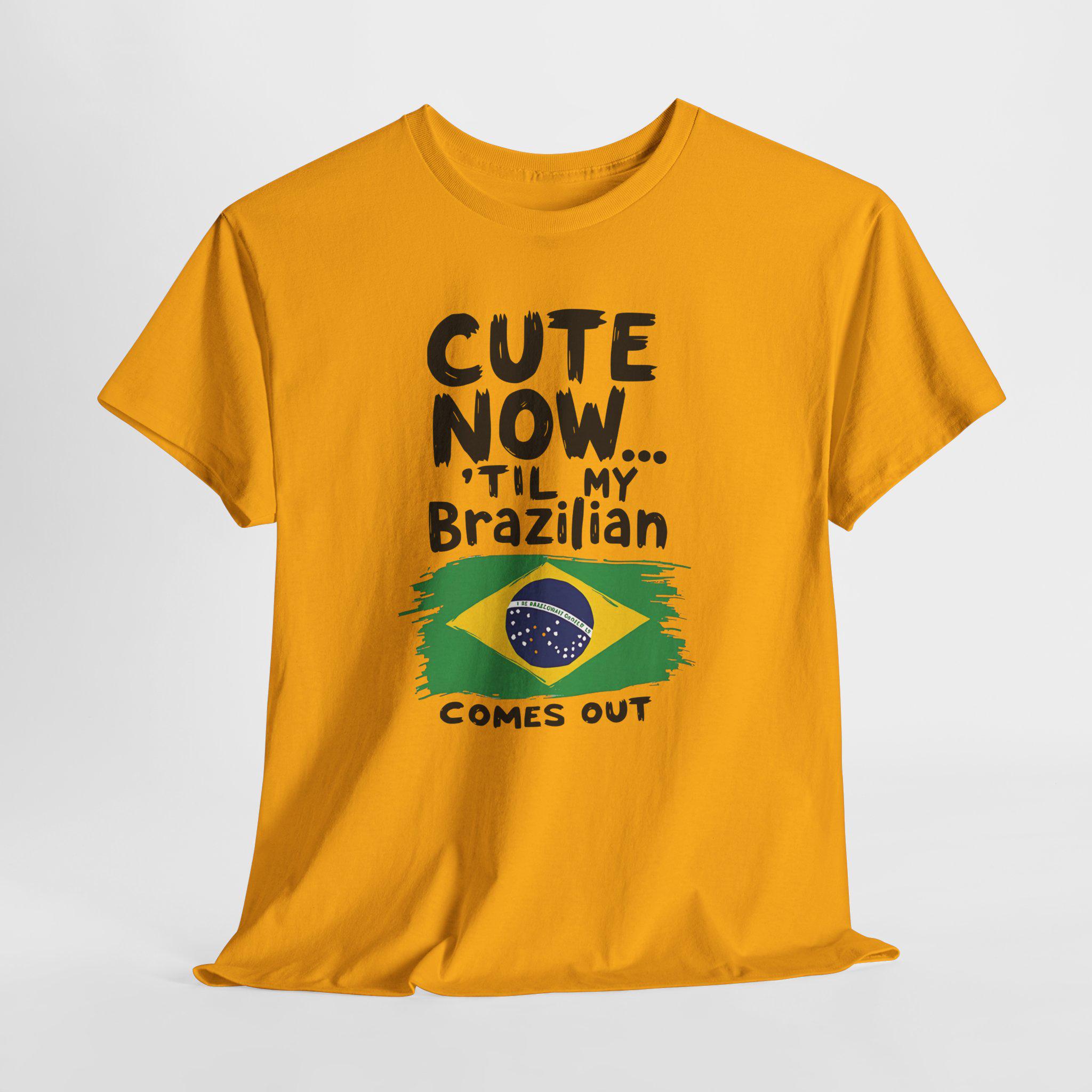 Bring the Brazilian energy with a tee that says exactly what everyone’s thinking. This “Cute Now… Til I’m Brazilian Comes Out” shirt features a bold Brazil flag brushstroke graphic and crisp lettering that stands out on every color option.