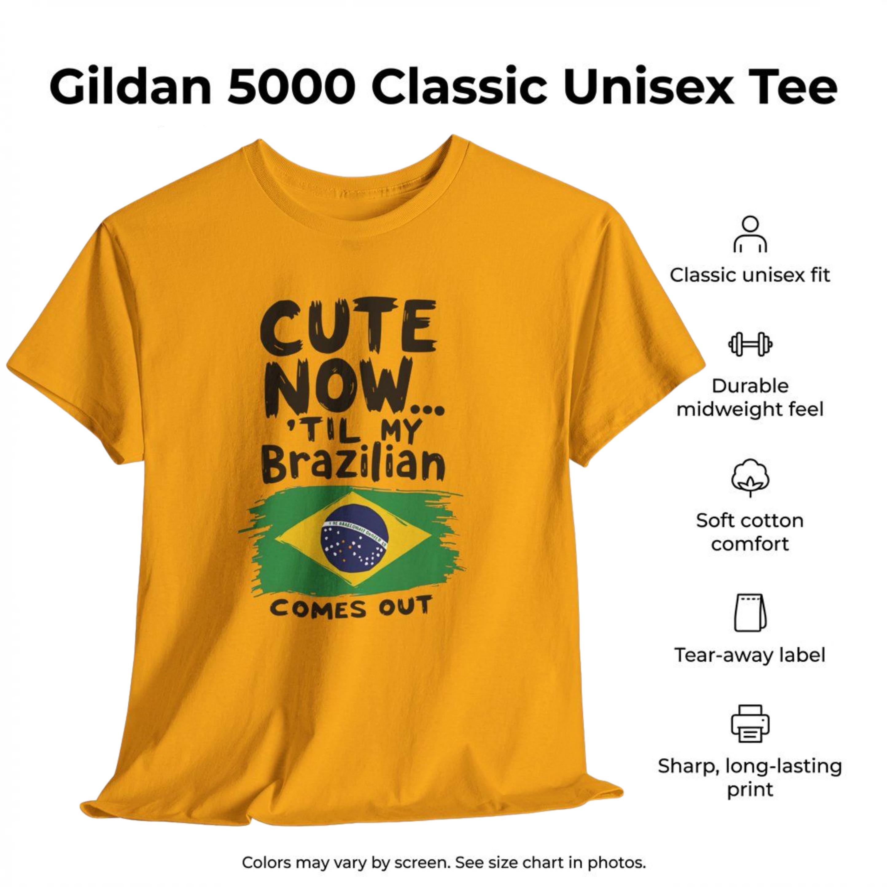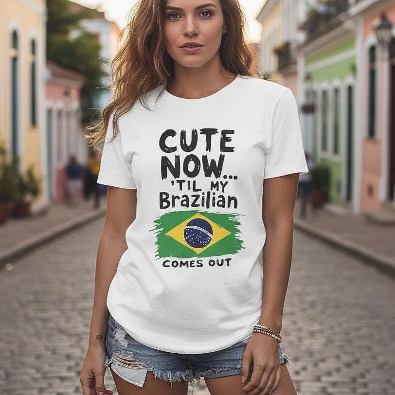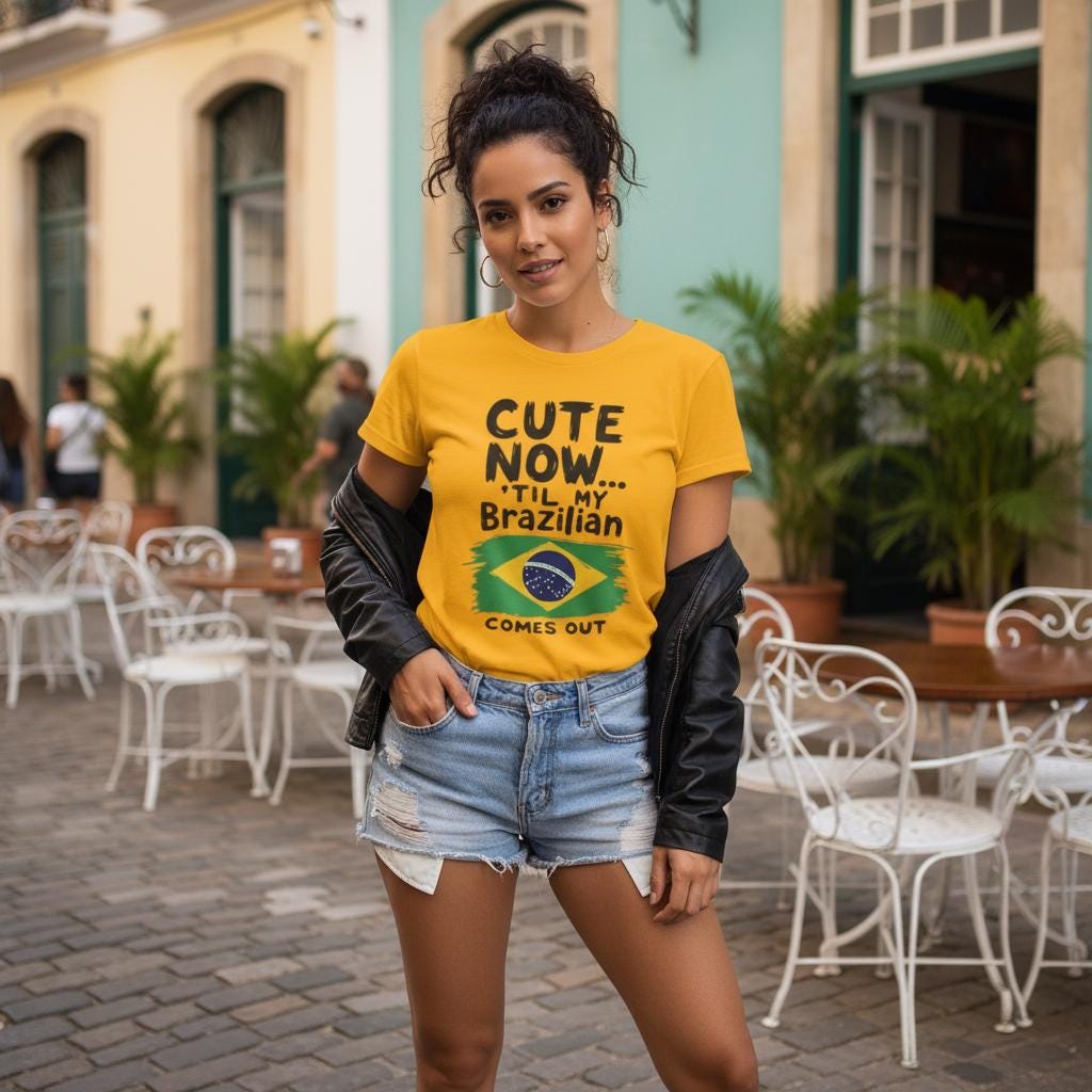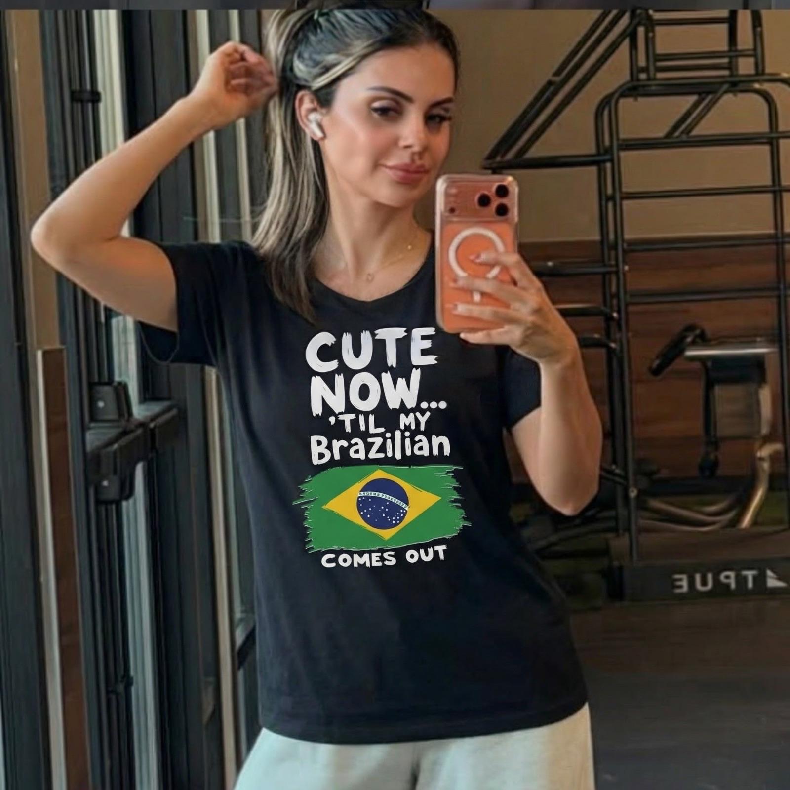 Bring the Brazilian energy with a tee that says exactly what everyone’s thinking. This “Cute Now… Til I’m Brazilian Comes Out” shirt features a bold Brazil flag brushstroke graphic and crisp lettering that stands out on every color option.